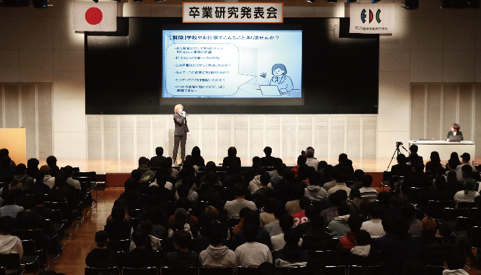 本校の卒業研究発表会にて、最先端のIT技術に挑む学生たちが、自らの情熱と独創力で描く未来のビジョンを、熱いプレゼンで発表しました。