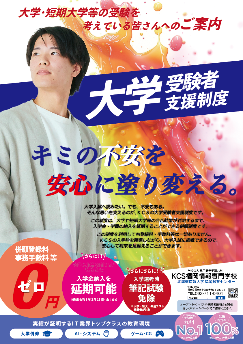入学金・学費の納入を、最長で令和8年3月13日(金)まで延期することができます。