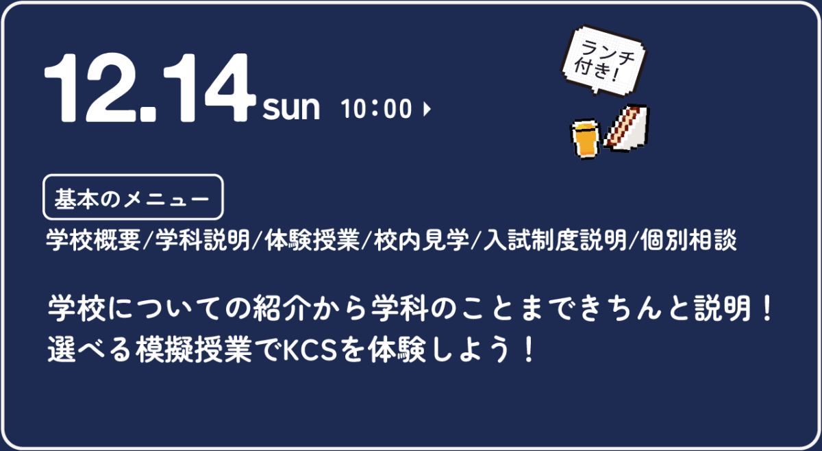 12/14(日)のオープンキャンパスで、KCSで授業を疑似体験をしょう!
