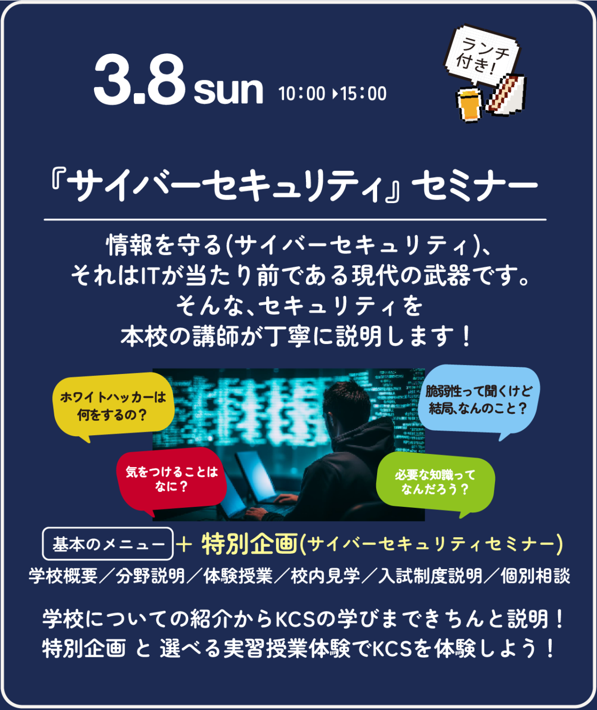 3/8(日)のオープンキャンパスは特別企画『サイバーセキュリティ』セミナーを開催!