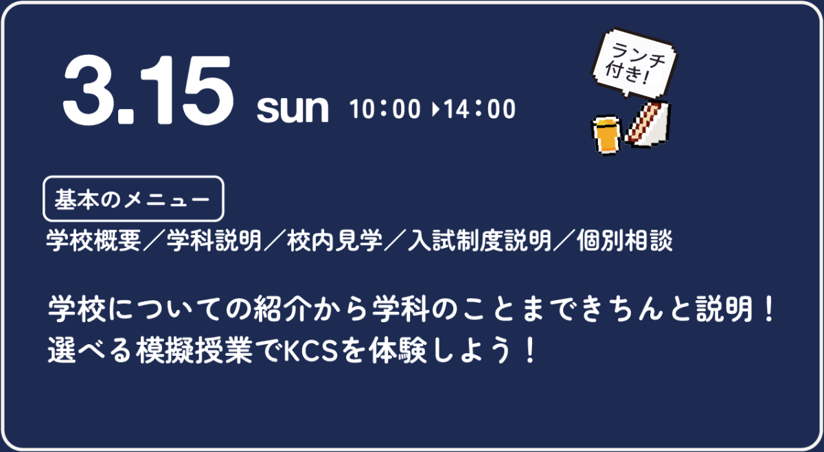 3/15(日)のオープンキャンパスで、KCSでリアルな体験をしょう!