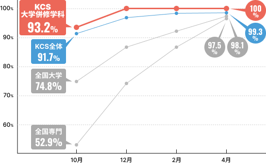 全国の大学・専門学校とKCSとの就職内定率遷移の比較