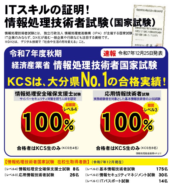 2月4日(水)に「情報処理安全確保支援士試験」「応用情報技術者試験」(2025年12月合格者)、「基本情報技術者試験」「情報セキュリティマネジメント試験」(2025年11月~12月合格者)の合格証書授与式をおこないました。
